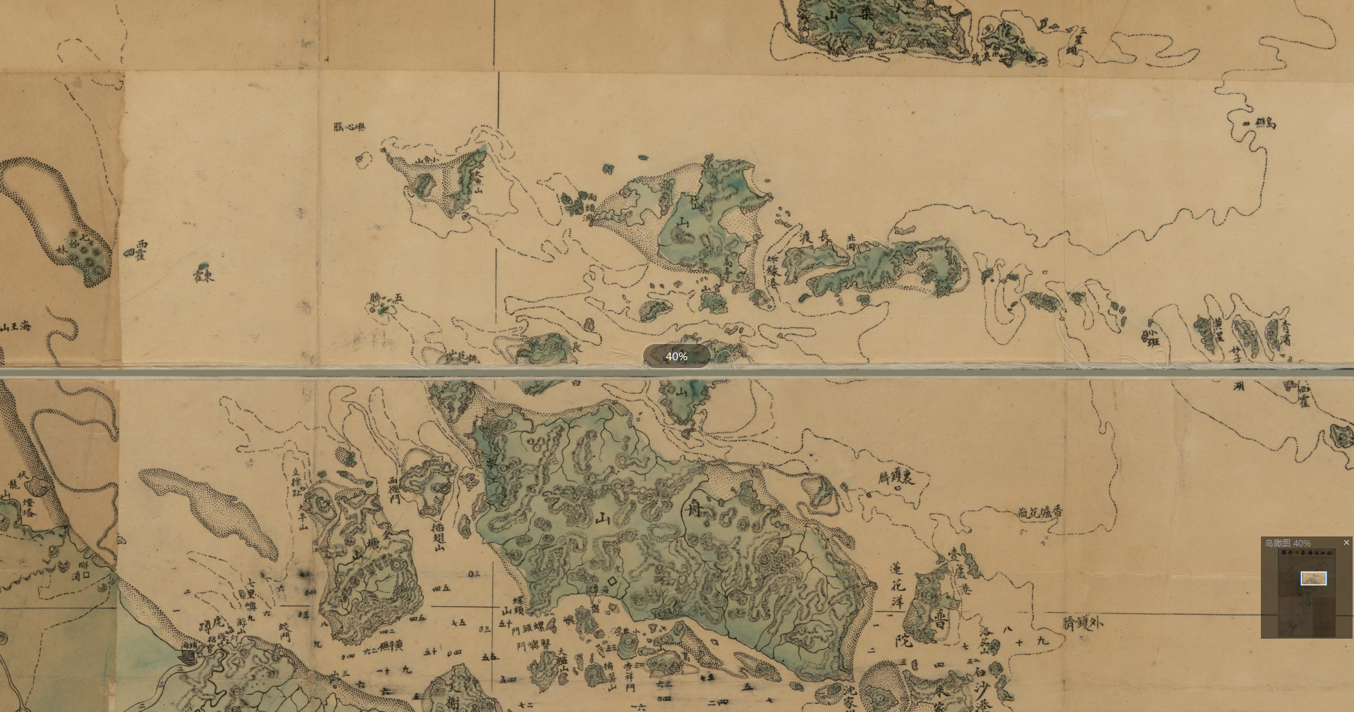 此《浙江沿海要口全图》绘制于清末光绪年间,由浙江督练公所参谋处绘制,采用近代绘图技术,图中附凡例、图例(大多为海岸地形的符号)和罗盘针,凡例并称“是图系用圆柱画法”绘制,也采格林威治经纬网,山峰的绘制采晕渲法 表现地貌高度。全图北起自杭州湾北岸与江苏省交界处,南至温州府瓯江口,西至钱塘江杭州府一带,东至海,主要强调浙江省沿海六府(嘉兴、杭州、绍兴、宁波、台州、温州)各要口的海岸地貌,如岛屿、暗沙、礁石、江流、城镇、海塘、沙滩、溪涧等等,并标示航道、水深。