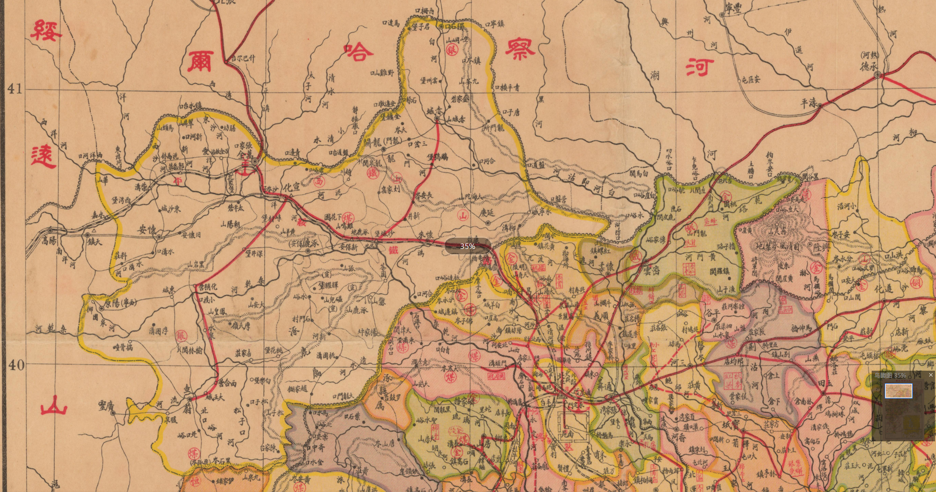 此《河北明细地图》为民国时期出版的河北省地图,比例尺1:108万,一县一色,另附有北平市街道图和天津市区域图,推测发行时间为1930年代。此图除了表现这一时期河北省的行政区划、道路交通等情况,还在图中标注了各地的工、农、矿等物产,内容详实,清晰整洁。