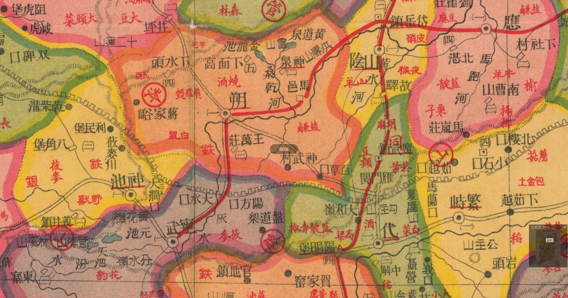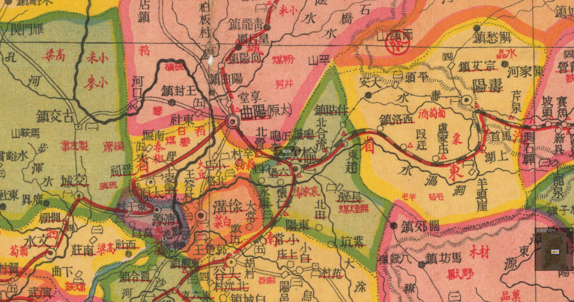 此《山西明细地图》为1930年代至40年代武昌亚新地学社编制的山西省明细地图,内容和形式与该出版社1938年出版的《山西明细地图》较为相近,应为之后再版的地图,增加了各地工农手工业特产,并附有省城和大同的街道图。