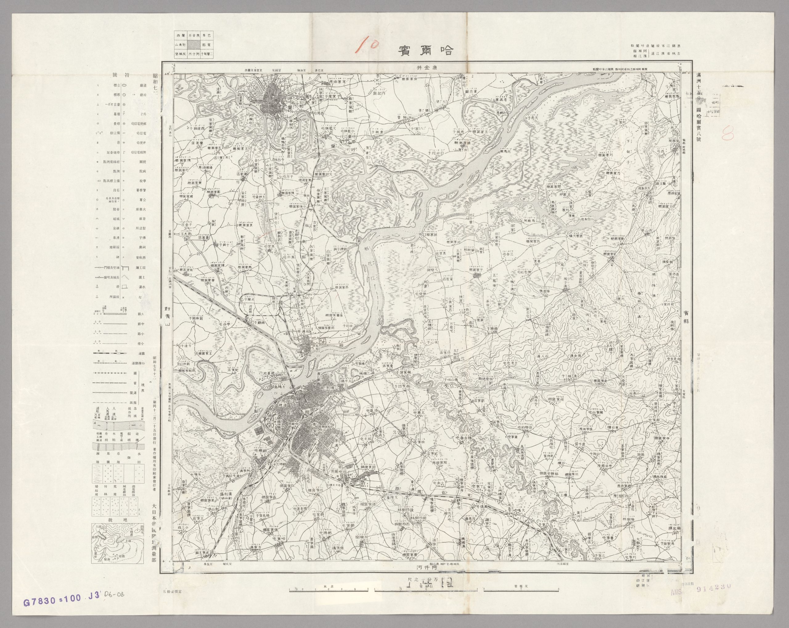 此《哈尔滨地图》是1932年日本陆军测量部绘制的哈尔滨市军用地图,详细标注了哈尔滨市街道格局、重要建筑和机关单位及周边村镇的分布,不同等级的道路交通、水田旱地、地形地貌等情况,内容十分详尽。