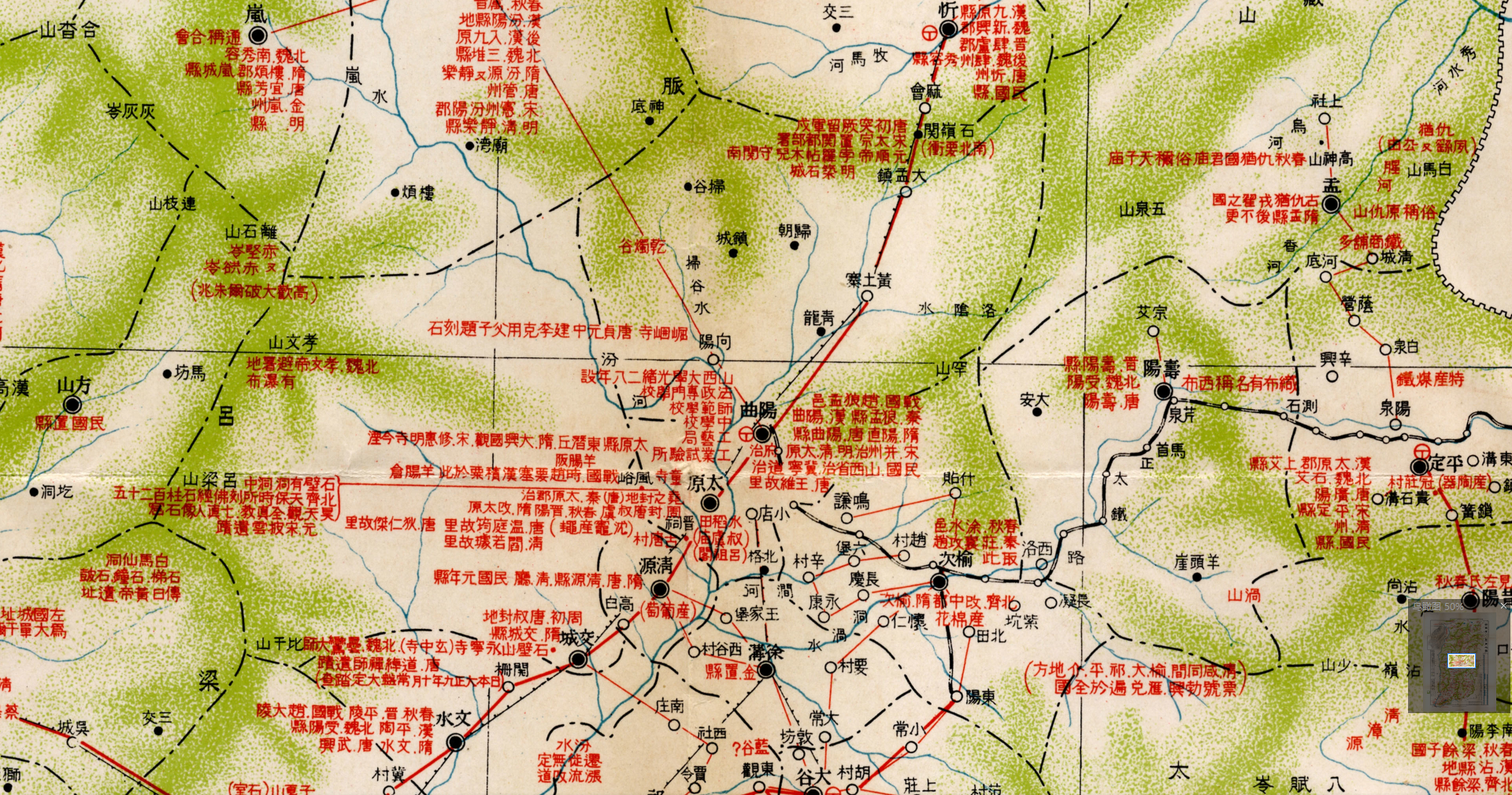 此《山西省及绥远省东南部历史地图》为1934年(昭和9年)由日本中文馆书店特别印制,展现了民国时期山西省及绥远省东南部地区的行政区划信息,同时辅以文字标注,详细描述了各地的人文历史。